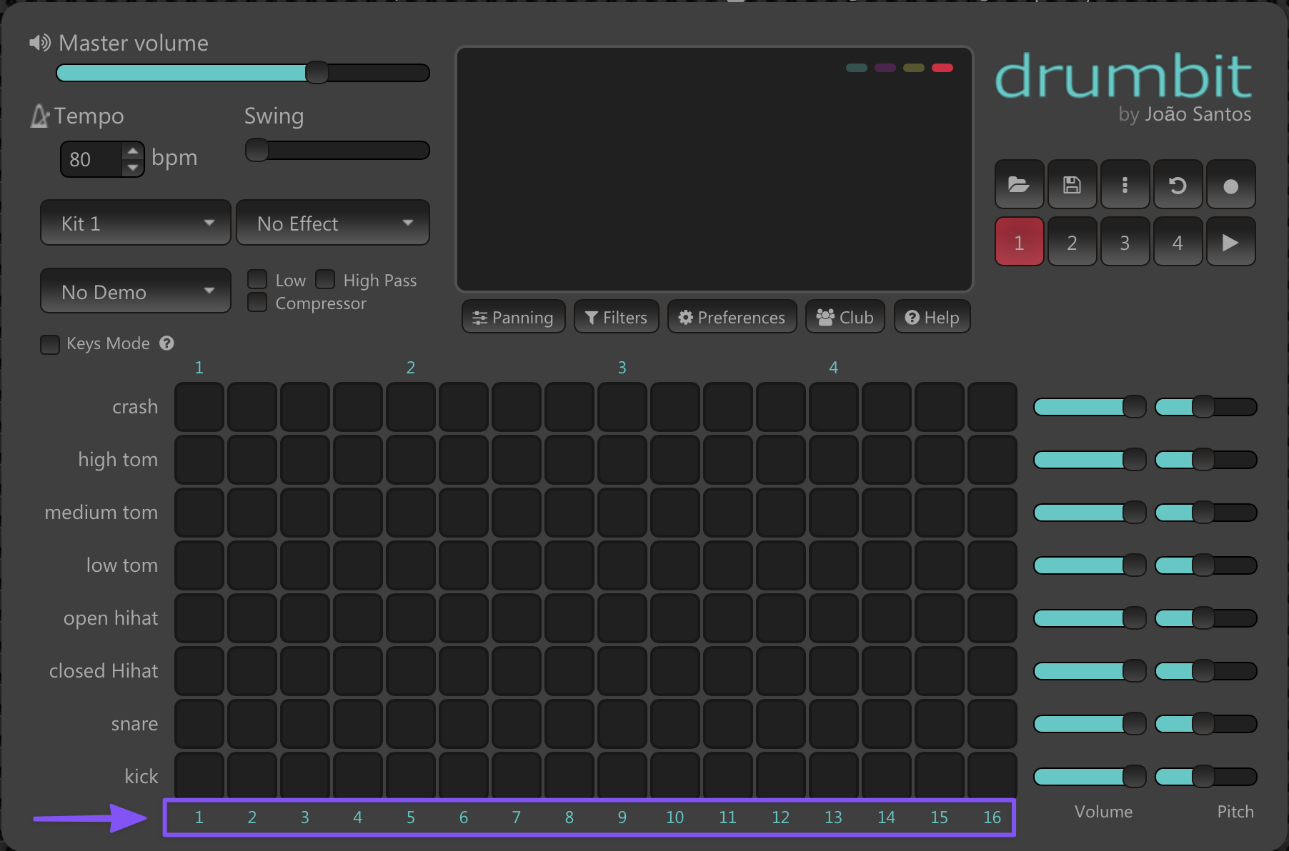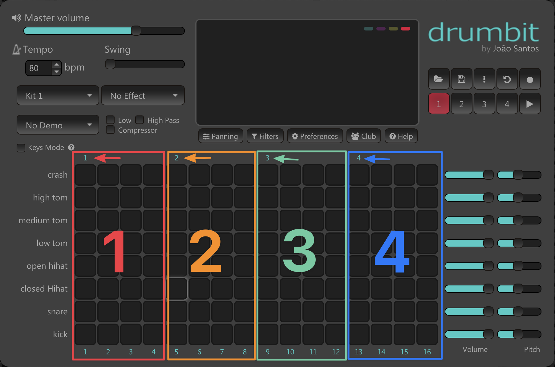 Here’s 1234 on just the kick drum: