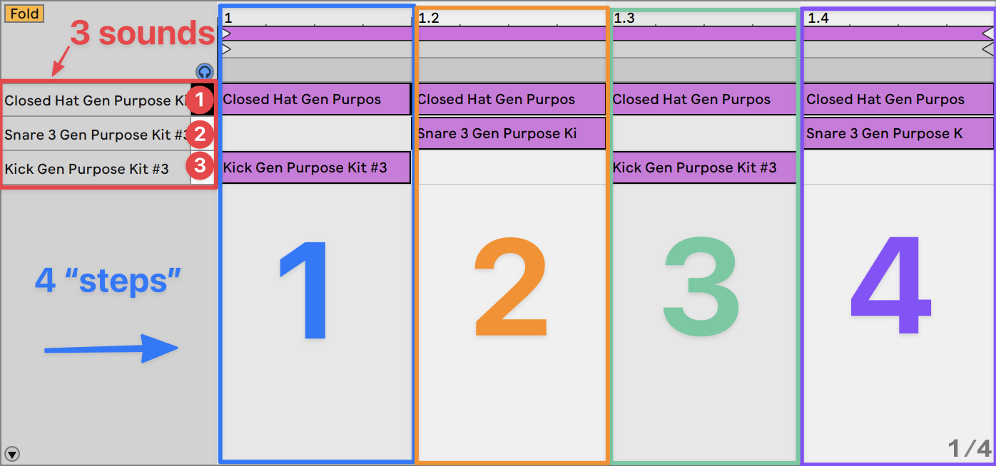 - Step sequencers show us WHEN a note happens