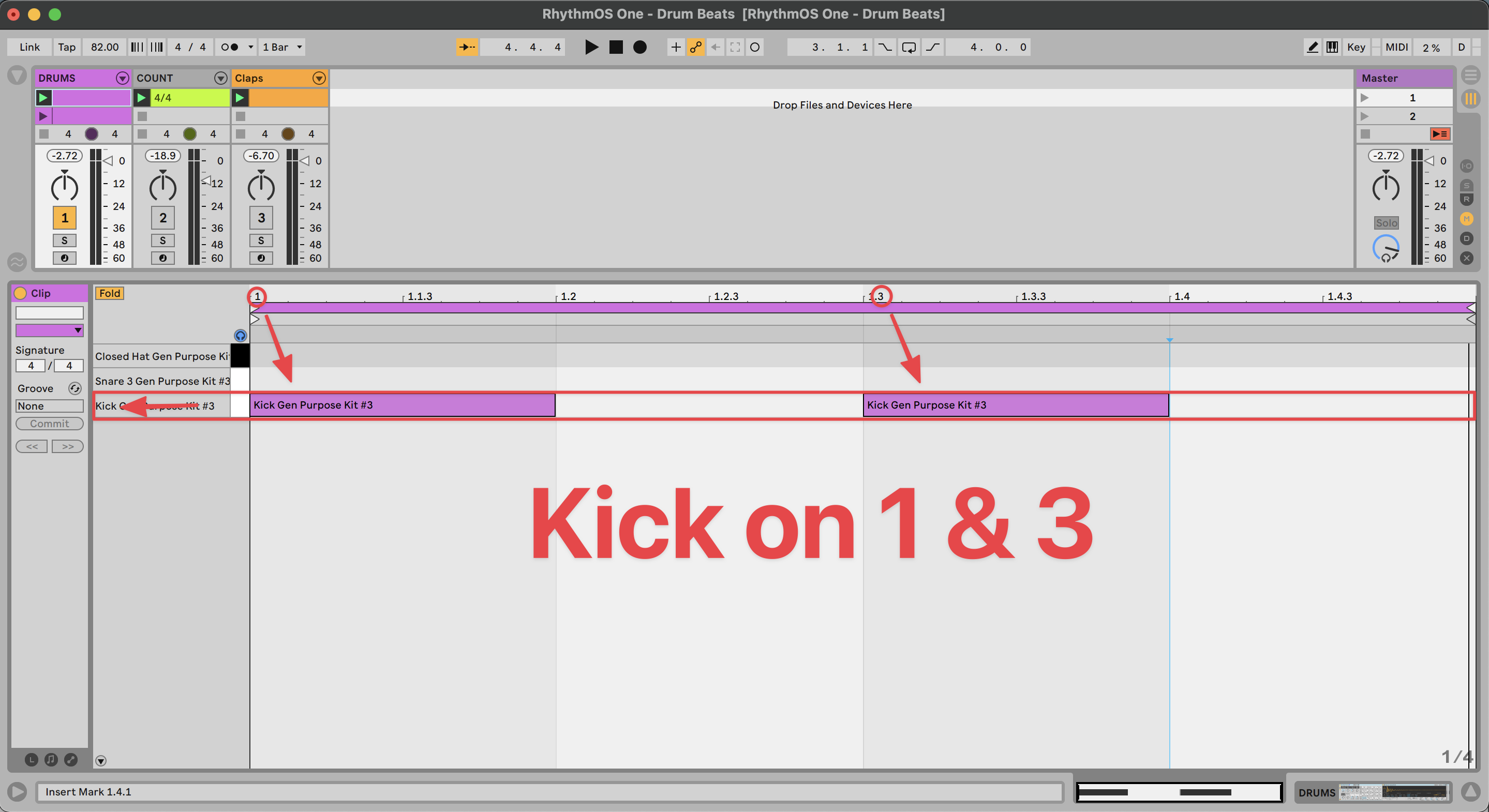 - The kick drum is most often played on beats 1 & 3…