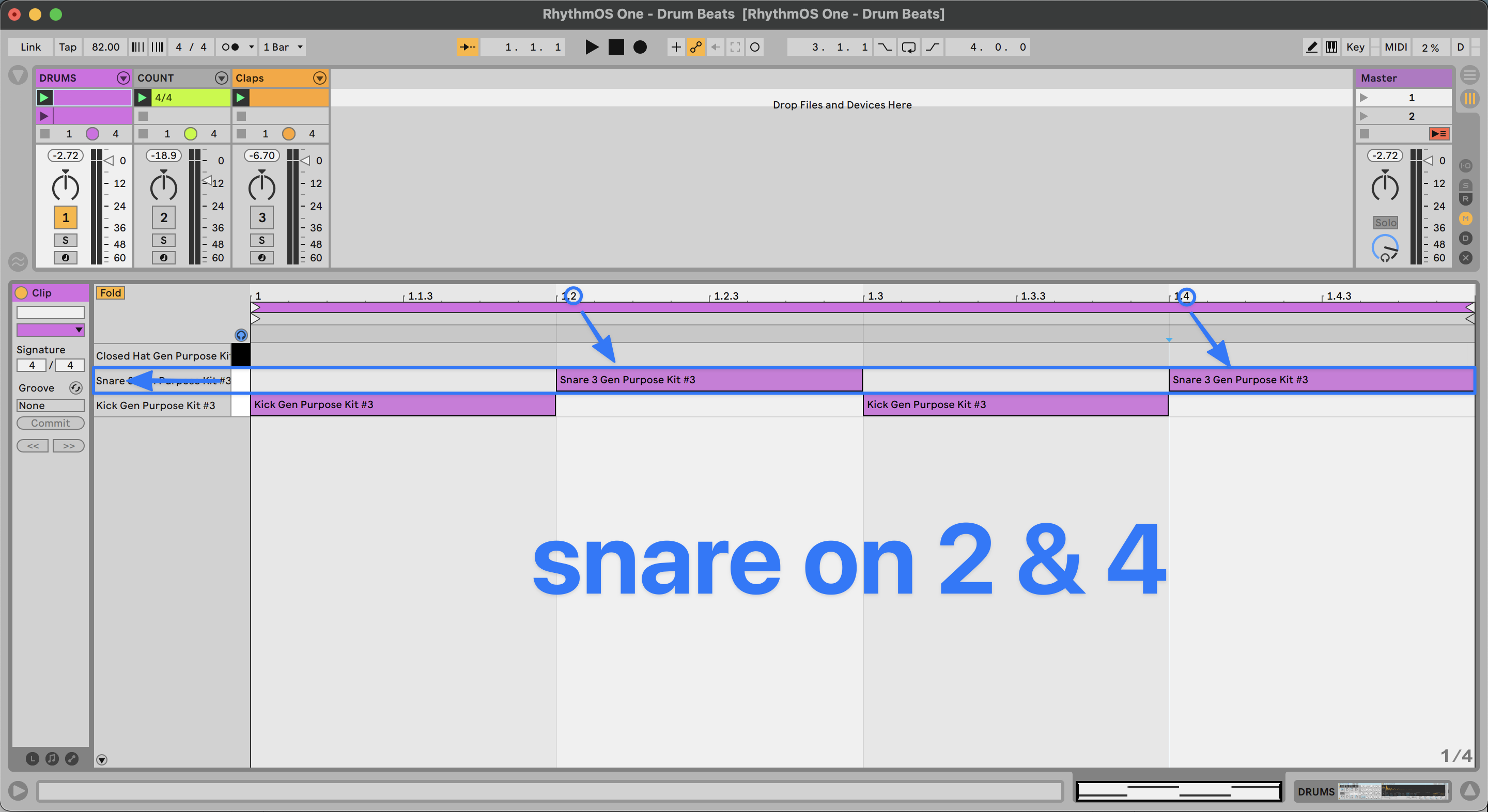 - …and the snare drum is most often played on beats 2 & 4.
